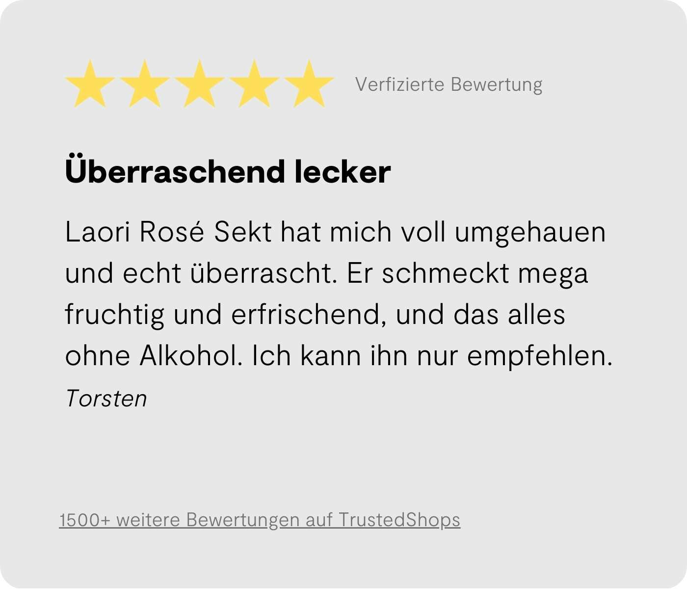 In our opinion, this is the champagne among non-alcoholic bubbles. Together with one of Germany's finest wineries, we have developed what we consider to be the best non-alcoholic sparkling wine. Grown in the beautiful vineyards of the Rheingau region, we use vacuum distillation to gently extract the alcohol from the grapes. This preserves the distinctive wine flavor and the delicate, sparkling aroma of the grapes. Laori Sparkling Rosé is thus the closest thing to the original.