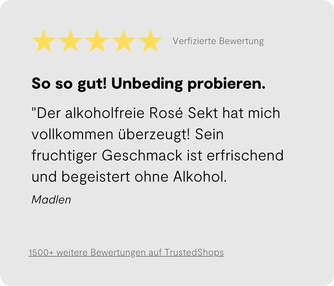 There is non-alcoholic sparkling wine and there is 0.0 sparkling wine.Non-alcoholic sparkling winecan be up to 0.5% alcohol by volume contain. So-called0.0 drinksmay contain up to 0.05% alcohol by volume. Therefore, there will always be traces of residual alcohol. You can read more about the difference between alcohol-free and 0.0 on our Blog here.
