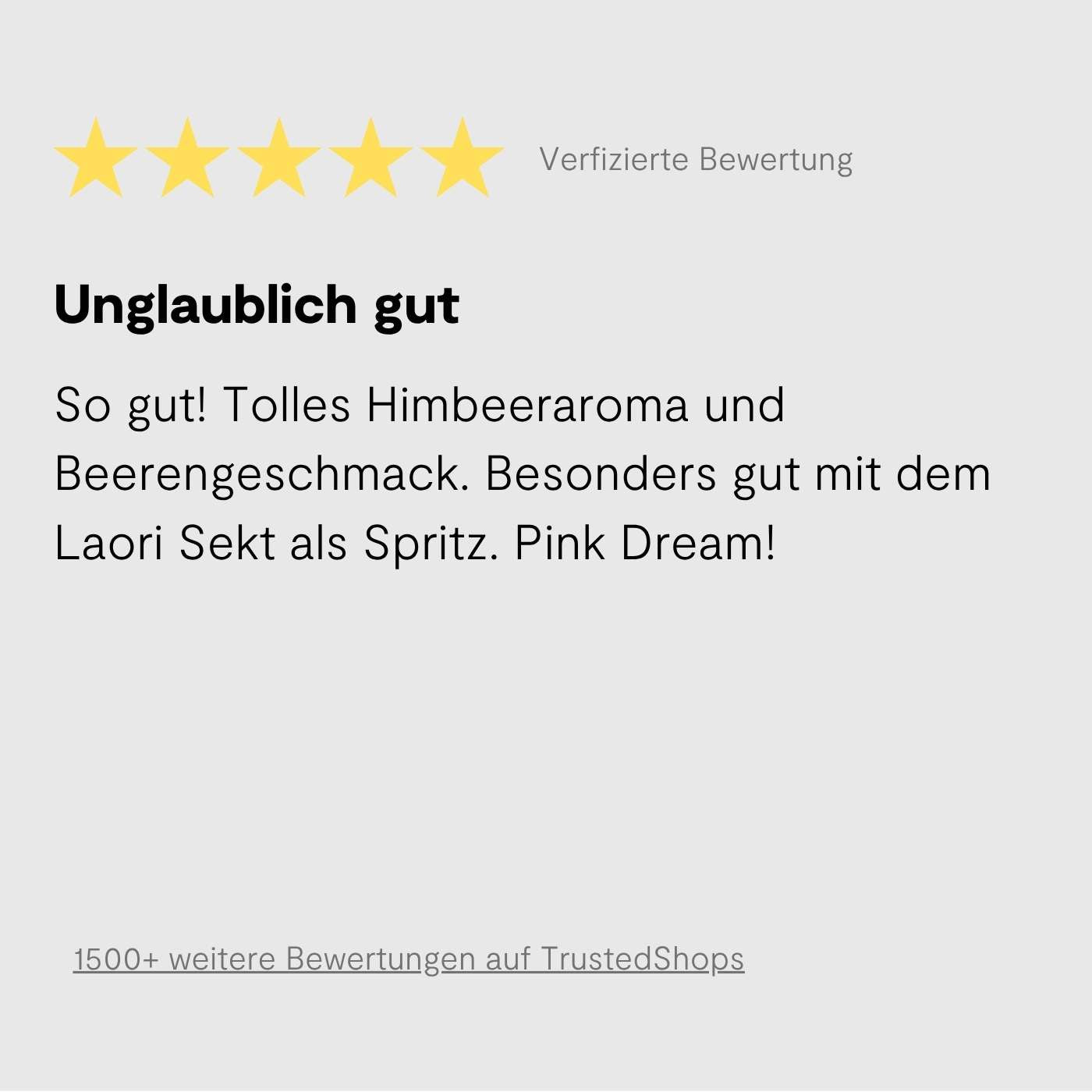 Laori Aperitif entfaltet sein volles Aroma am besten in einem Drink. Am Besten schmeckt er als leckerer Berry Spritz mit unserem Sekt Laori Sparkling White. Für den perfekten Pink Dream garniere deinen Drink mit samtigen Himbeeren, Erdbeeren und Johannisbeeren. Mehr Rezeptinspiration findest du auf unseren Blog hier.